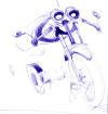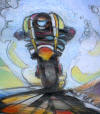 Eine besonders tiefe Zusammenarbeit hatte Stefan Müller mit dem Künstler Heinz Hermann: Eines der Themen der Arbeiten war „Motorrad“. Beide wollten dem Gefühl der unendlichen Freiheit Form verleihen. Es entstand die 1000er Satan. Ein Motorrad ohne Wiederkehr! Wer es jemals fahren würde, hätte keine Chance! Heinz Hermann verstarb. Seine Arbeiten sind unvergessen. Stefan Müller hat das Thema fortgeführt. Heinz fehlt, Stefan geht weiter. Die 1000er Satan bleibt im Verborgenen. Heinz und Stefan haben ein ganz neues Motorrad geschaffen, das niemals entstehen wird. Jeder will es fahren. Hier stehen Zeichnungen